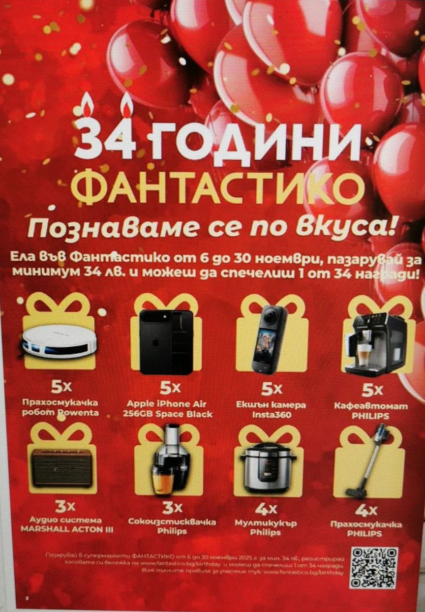 пазарувай за 34 лв и спечели 34 награди