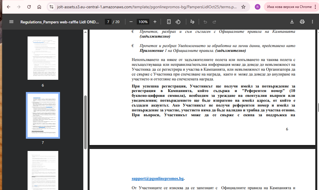 Посочили са този имейл в правилата на играта support@pgonlinepromos.bg