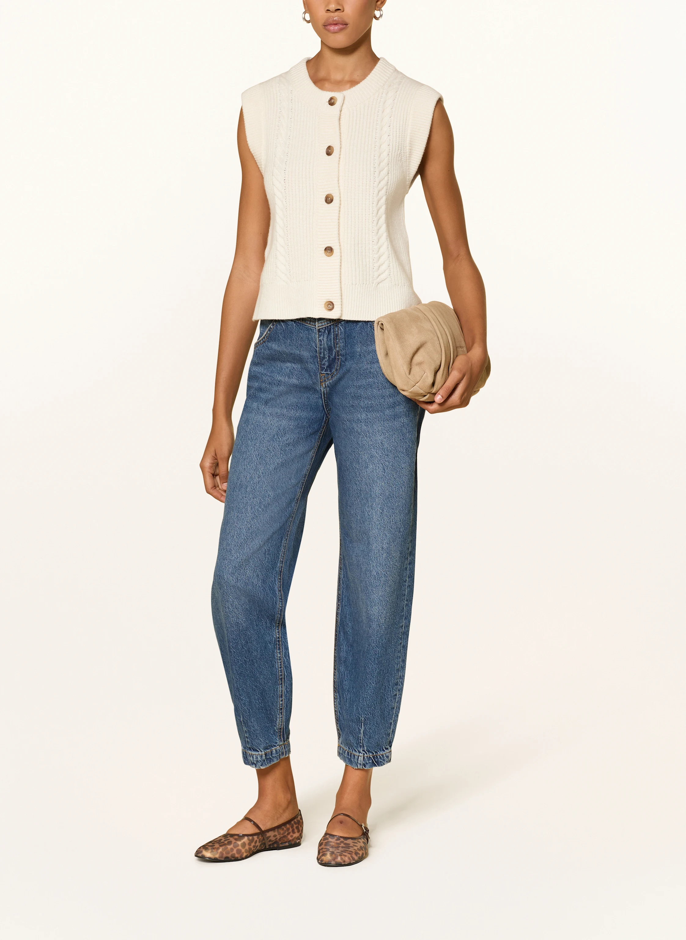 с широк, но къс пуловер, запасан