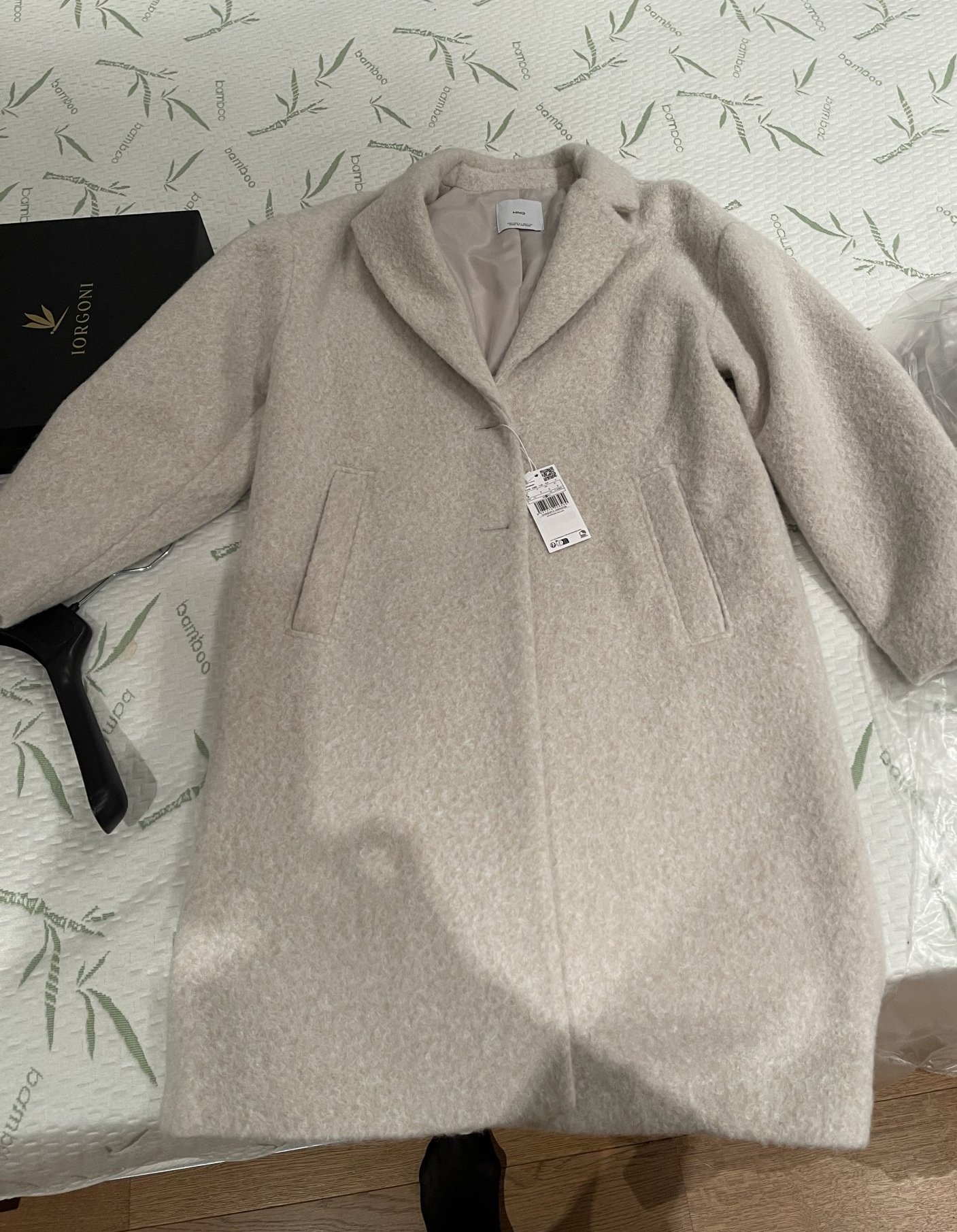 Мариета, на мен много ми хареса, аз нося такива палта. Щом е букле още повече ми харесва, като цвят също и се съчетава практически с всичко. Но зависи и как ти стои,  по принцип на теб ти отиват такива модели. Първата ми мисъл беше, че може с днешния аутфит да застане, но не зная трябва да се пробва. Две бързи предложения за съчетание с панталон. С пола също се получава много хубаво
