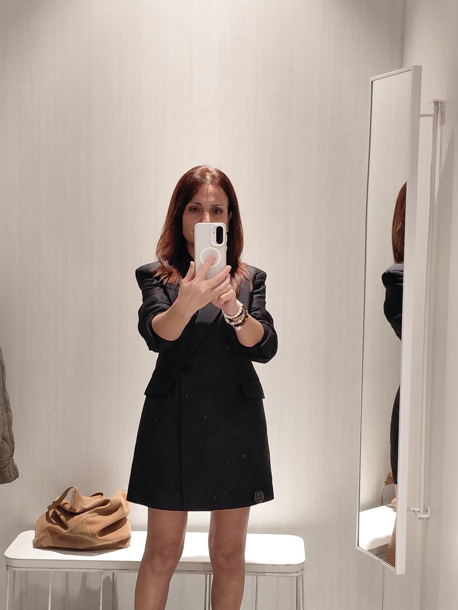 Пия си кафето с вас и се колебая за една рокля тип блейзър - е ли много мини или не е.