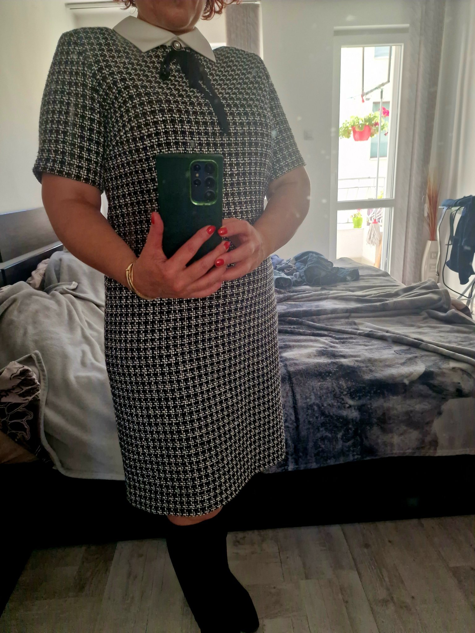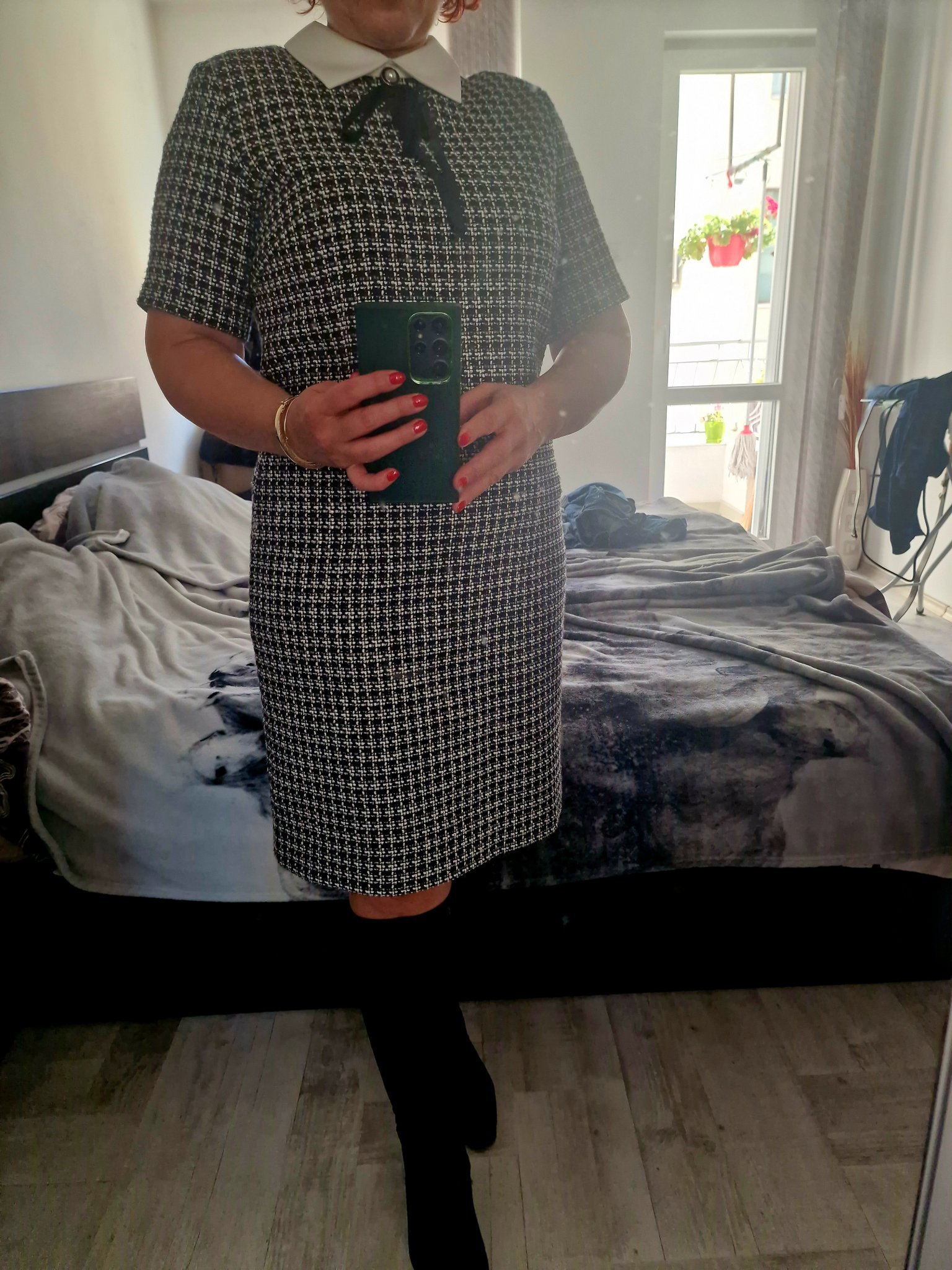 Калитеа, роклята ти стои прекрасно! С черен чорап - ще е идеална. Въпросът е дали ще се чувстваш комфортно в нея на партито. Дали ще трябва да мислиш и внимаваш как ще сядаш, ще се навеждаш с нея и т.н. От тази гледна точка минито е претенциозна дреха.