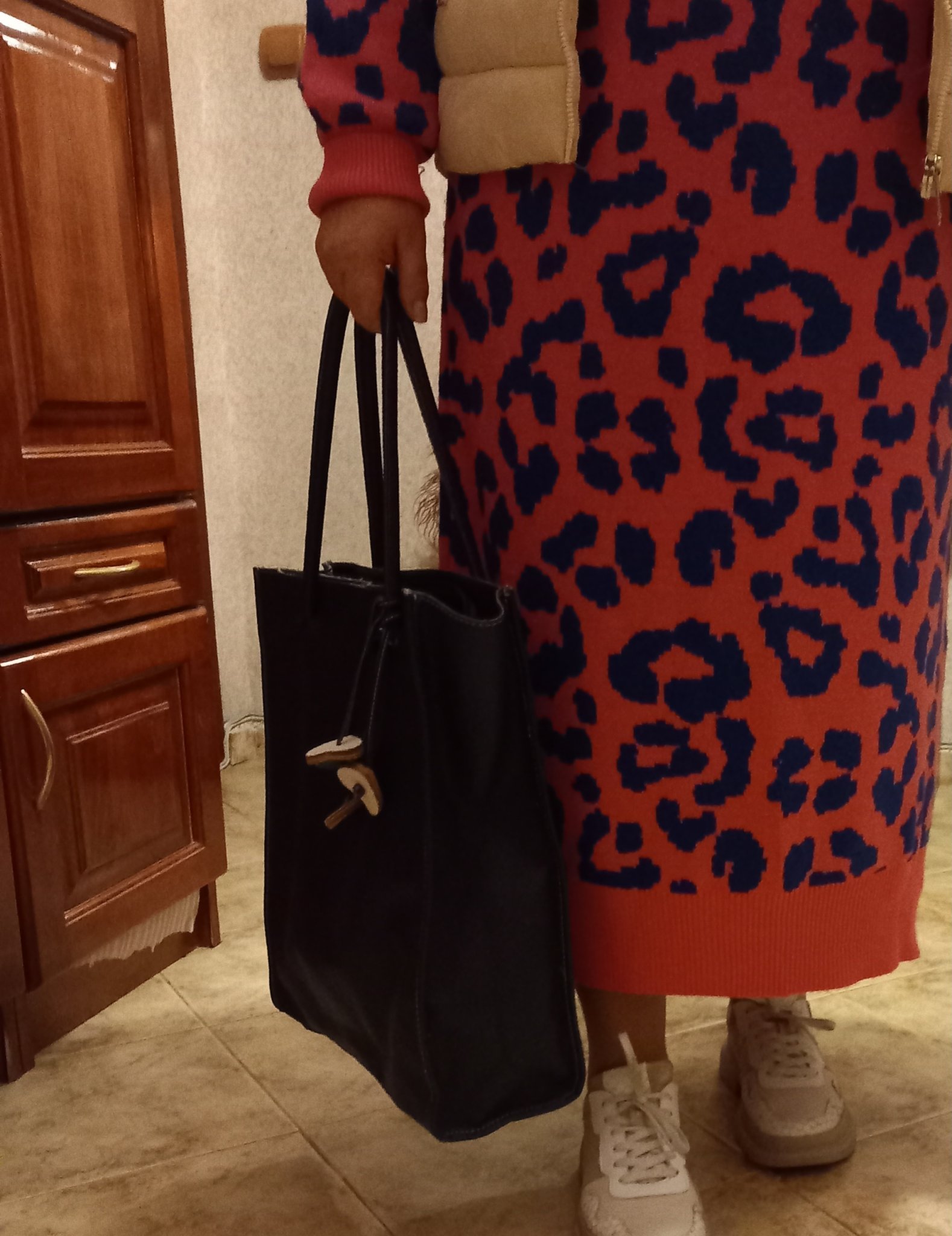 Ще я нося с черно кожено яке или черно дълго палто, сега като се замисля, имам и едно велурено яке пепел от рози или нещо от сорта, може би и с него ще става. Въпросът ми е с черни обувки и чанта ли?
