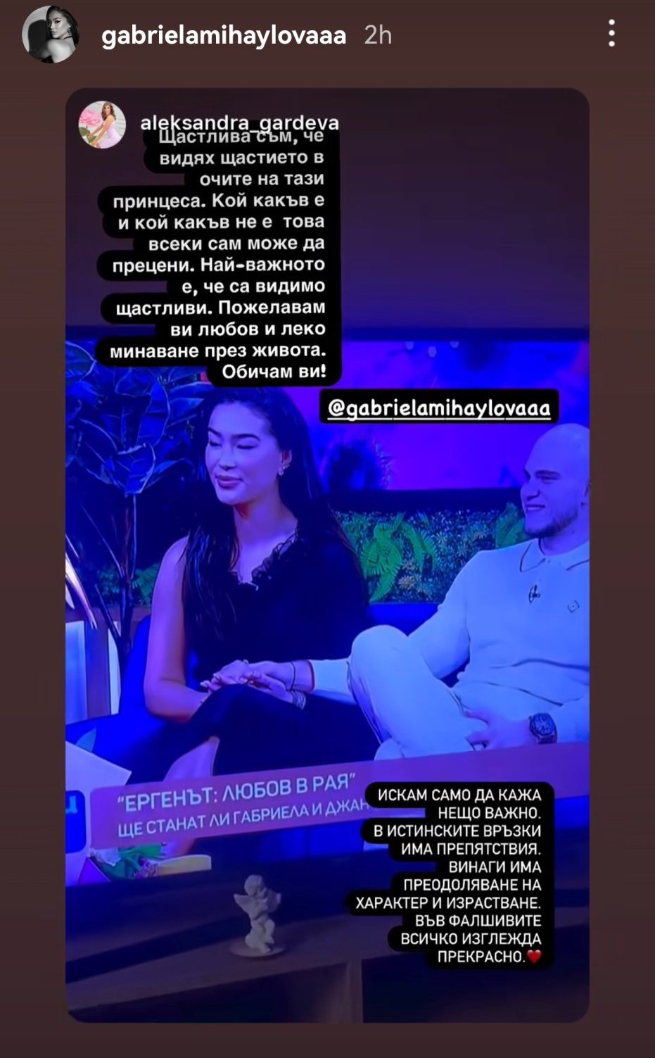 Ние, всъщност, нищо не видяхме от "началото" на връзката на Габриела и Ригатоне. Във втори епизод те вече седяха прегърнати и влюбени. Тезата, че са влезли като двойка в предаването за мен е единствената логична на целия цирк, който гледахме с тях.