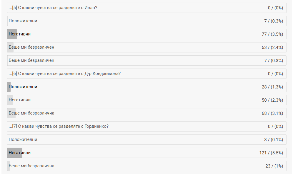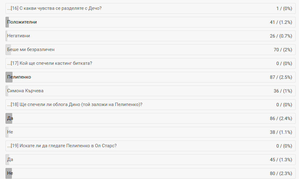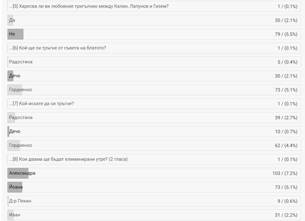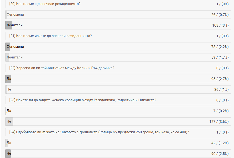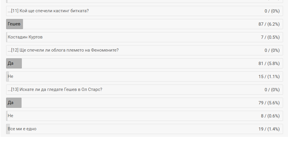 1. Не, на продукцията и беше все тая кой ще спечели 77 гласа