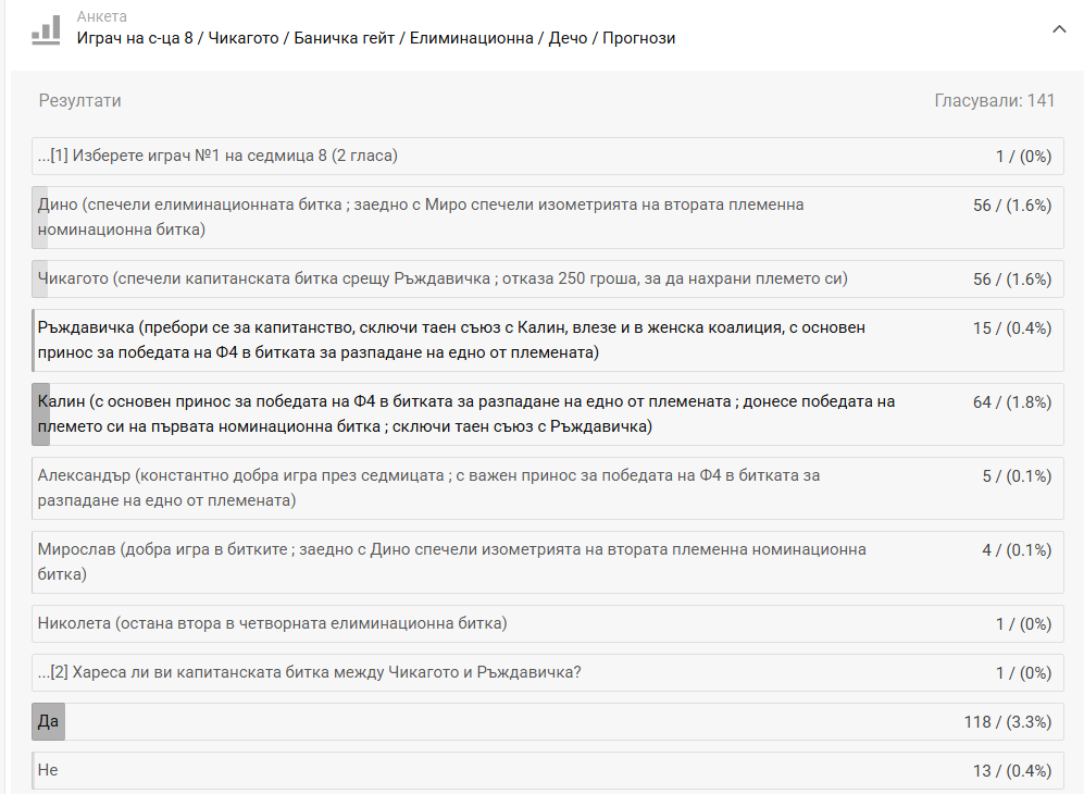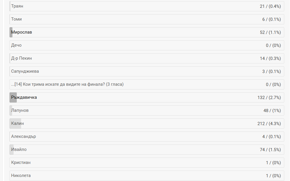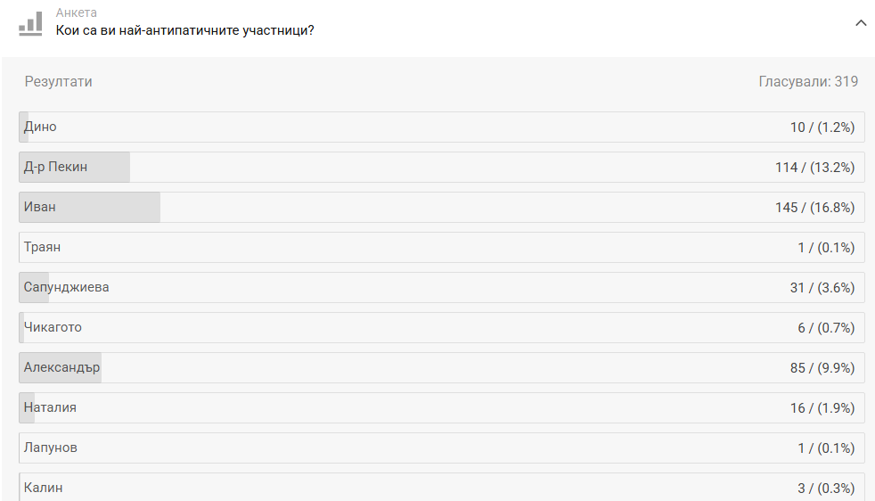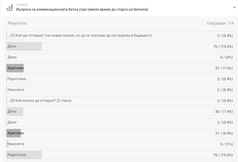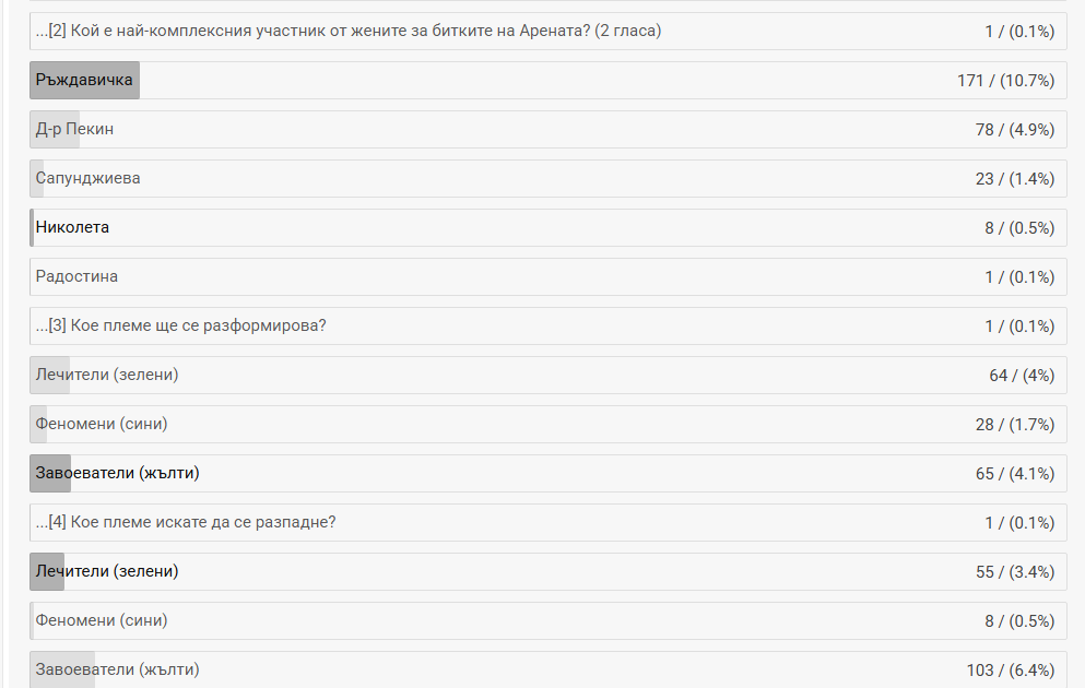 1. Не, на продукцията и беше все тая кой ще спечели 77 гласа