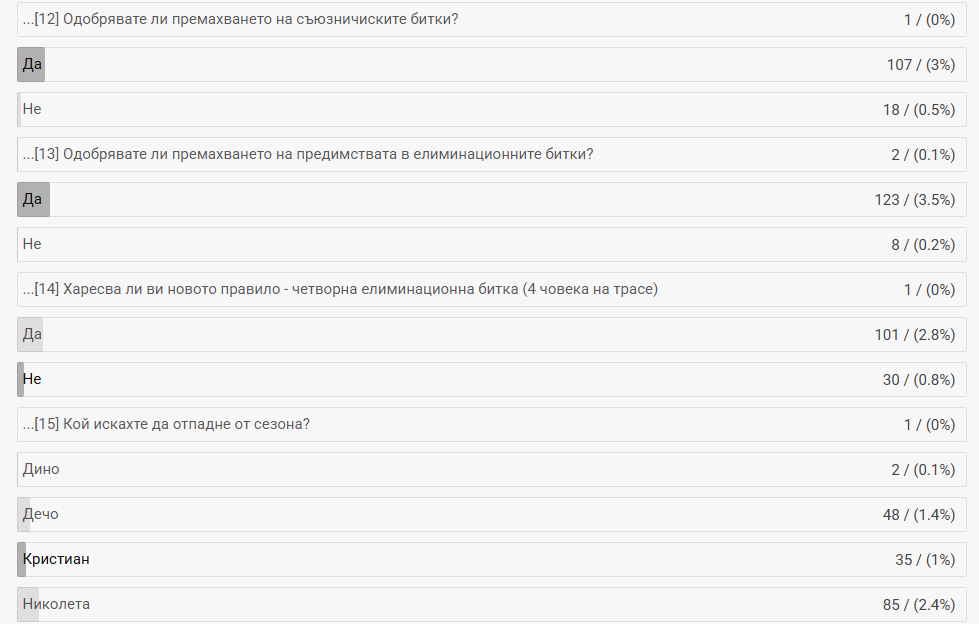Харесва ли ви новото правило - четворна елиминационна битка (4 човека на трасе)