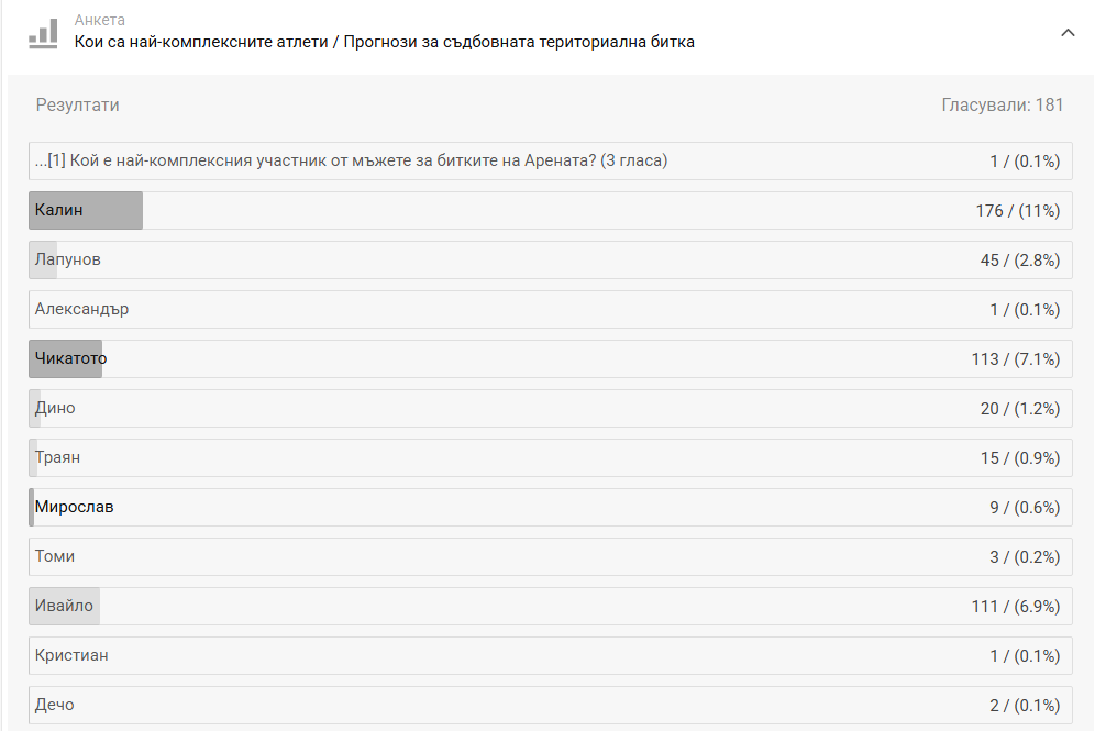 Кой е най-комплексния участник от мъжете за битките на Арената