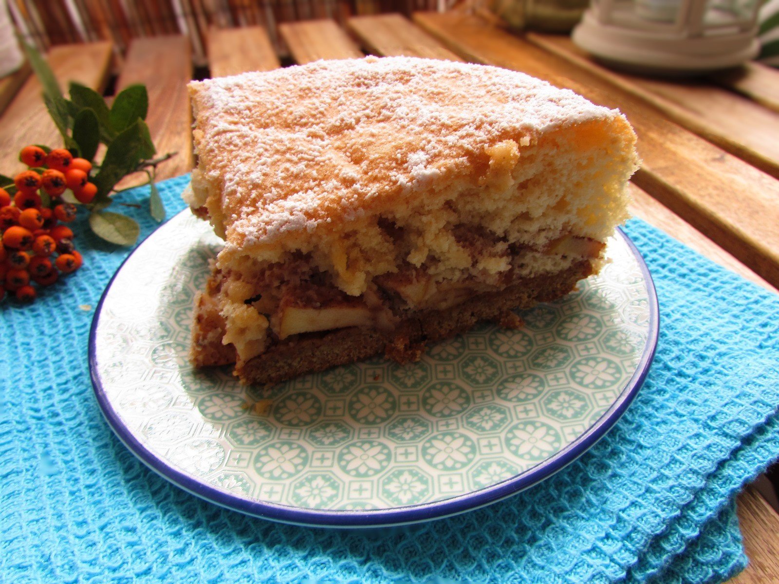 Яна, давам ти рецептата, която знам от баба ми. По принцип в повечето случаи горния блат с пандишпана се получава отделен пласт, но аз обичам да се слее с ябълките, така е по-сочен.