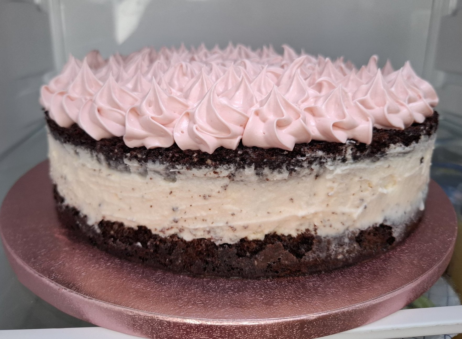 Ох, винаги съм се чудела дали да го направя, като са 20 см се сместват и на едно ниво, ама 26 трябва на 2 и все се чудя дали ще се изпекат равномерно, да не запека единия отгоре,  а другия отдолу повече🤔 иначе конкретно това тесто, в отличие от пандишпаните без набухвател, както и за разлика от кексовите, търпи и на изчакване. Може единия докато се пече, другия спокойно да чака отвън разбъркан.🤗