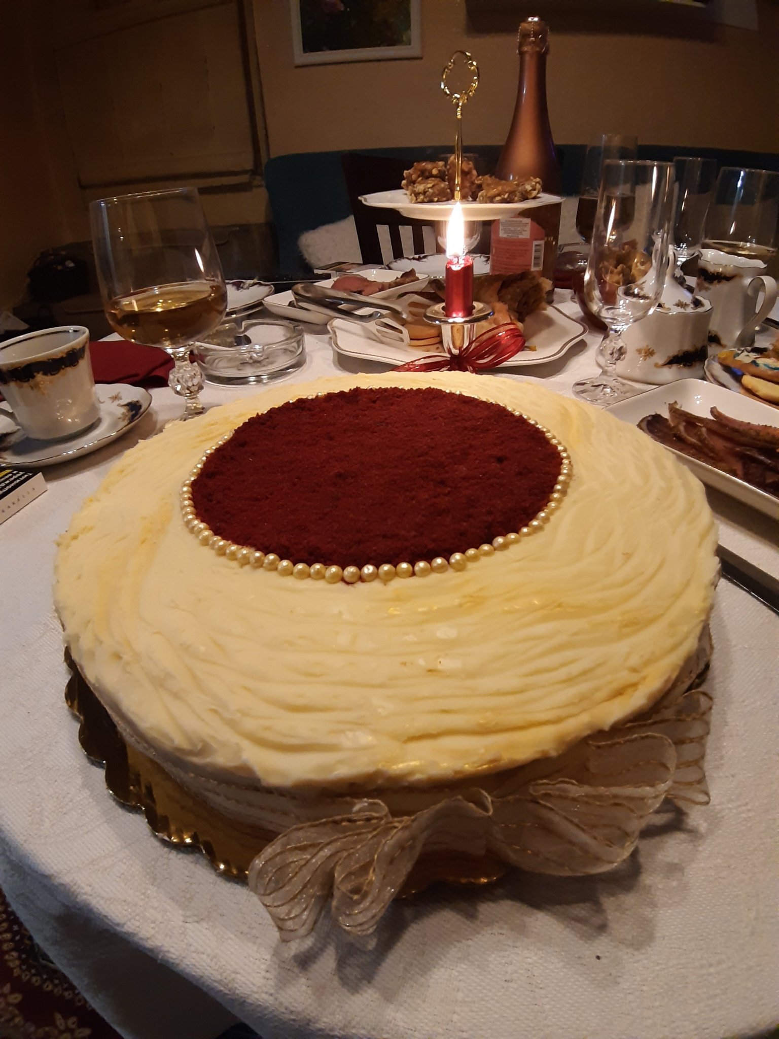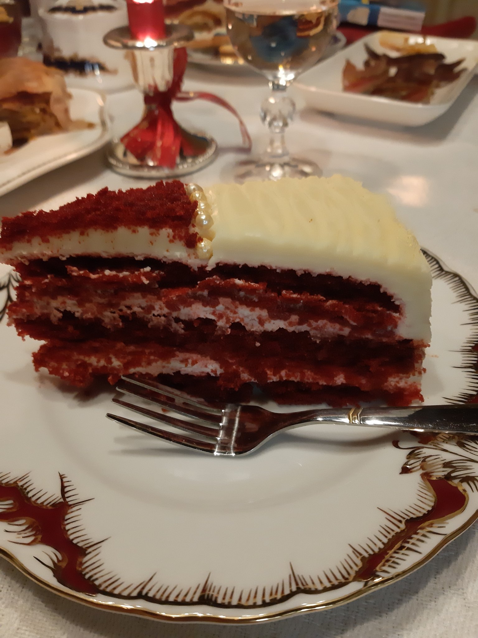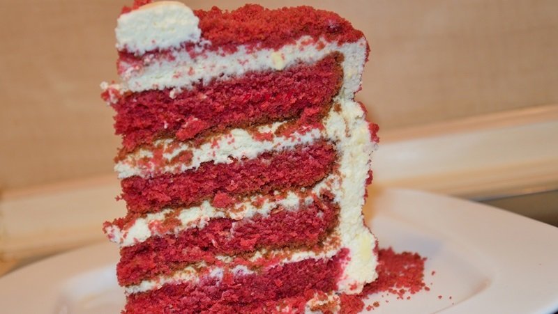 На тази Червено кадифе блатовете са печени отделно и след престояване и попиване и от крема си бяха съвсем сочни (ще прощавате, че снимката е от маса, ама гладниците не дадоха време да снимам отделно):