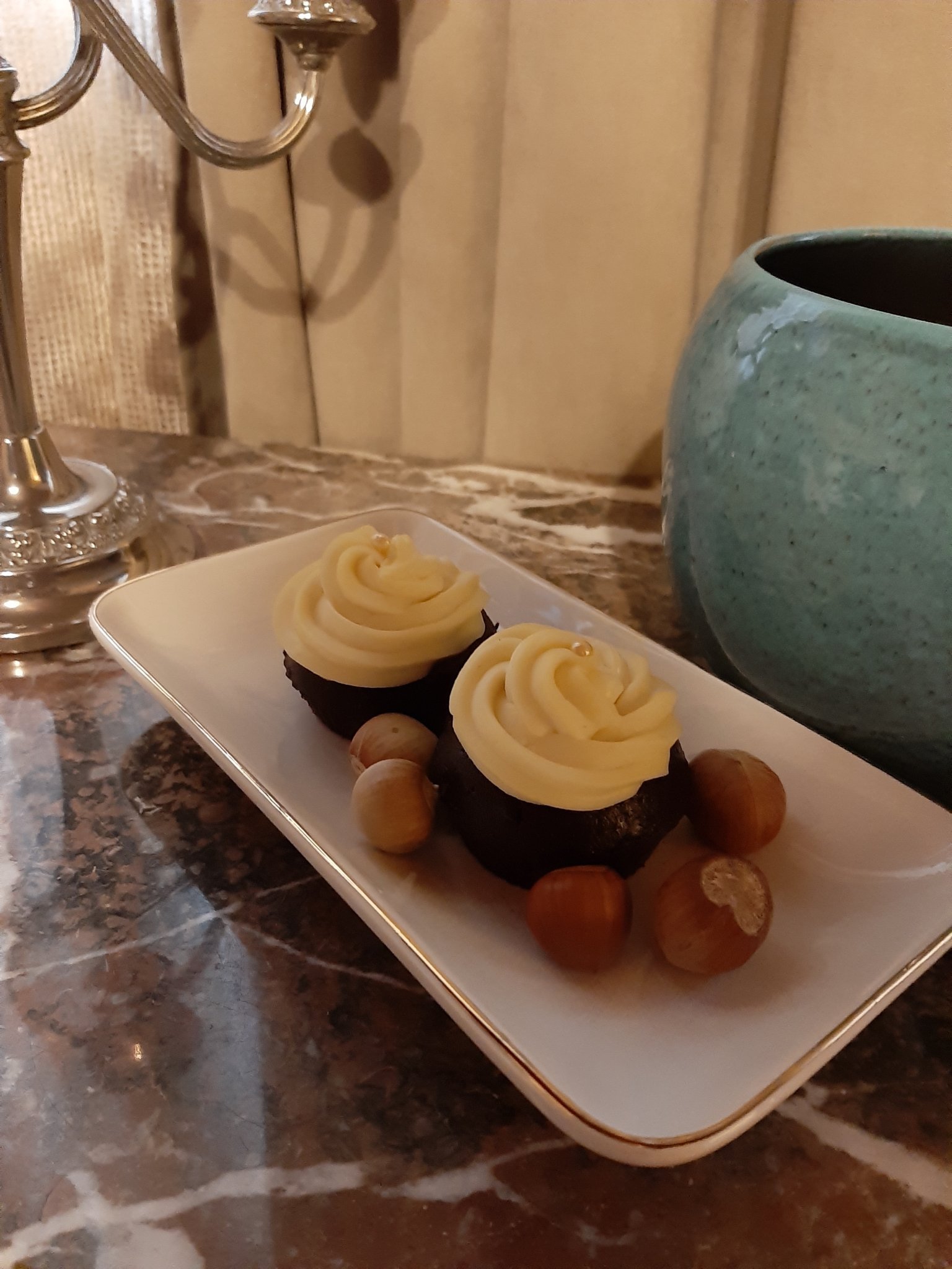Много прилича по състав (различава се по начина на приготвяне) на също така сочния блат на торта Червено кадифе. От същото тесто (и на двата блата) съм правила често и мъфини, които пълня с дулсе де лече и декорирам с крем маскарпоне и бял шоколад - много са благодатни за всякакви експерименти. Имах някъде старички вече снимки, да онагледя експериментите: