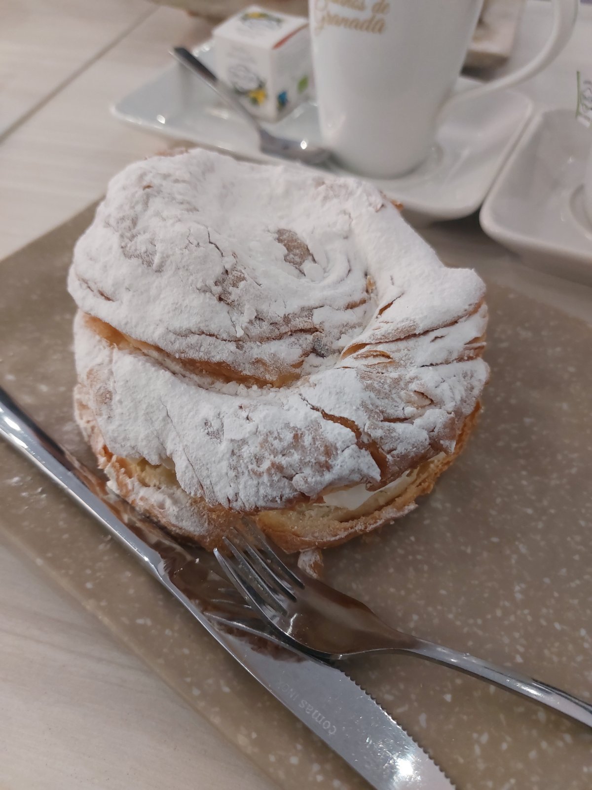 Вероятно си права. С четири гледам и пак не довиждам. На първата снимка се вижда отрязаното парче. Бяхме от първите клиенти сутринта в заведението. Тогава толкова сладки изкушения /втората снимка е явно на някои от тях и аз по погрешка съм я взел за чийзкейка/ изядох, че един месец после бях на "карантина".  Satisfied