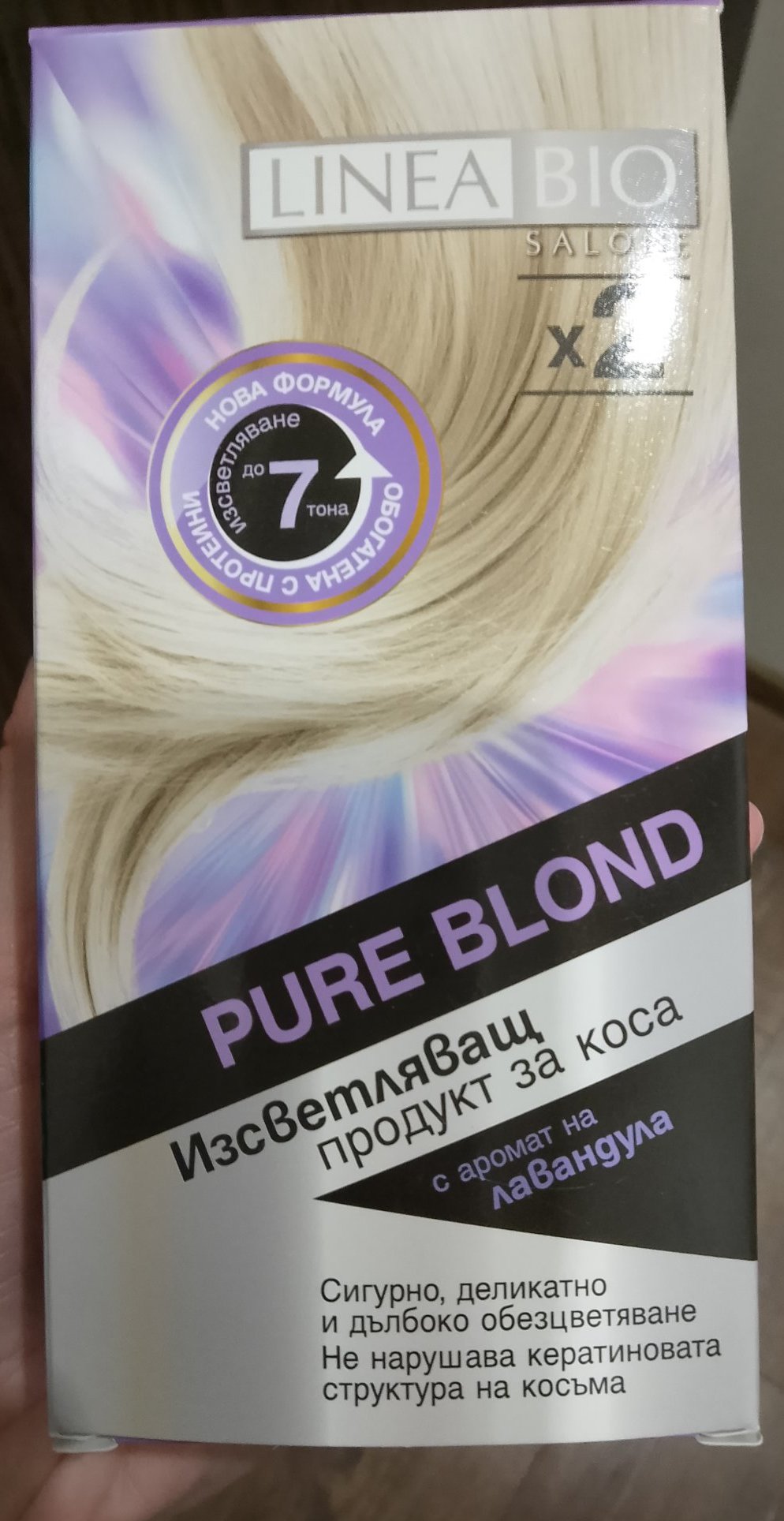 Например, ето този изсветляващ продукт за коса. Има и такъв от същата серия, който намалява жълтите отенъци.