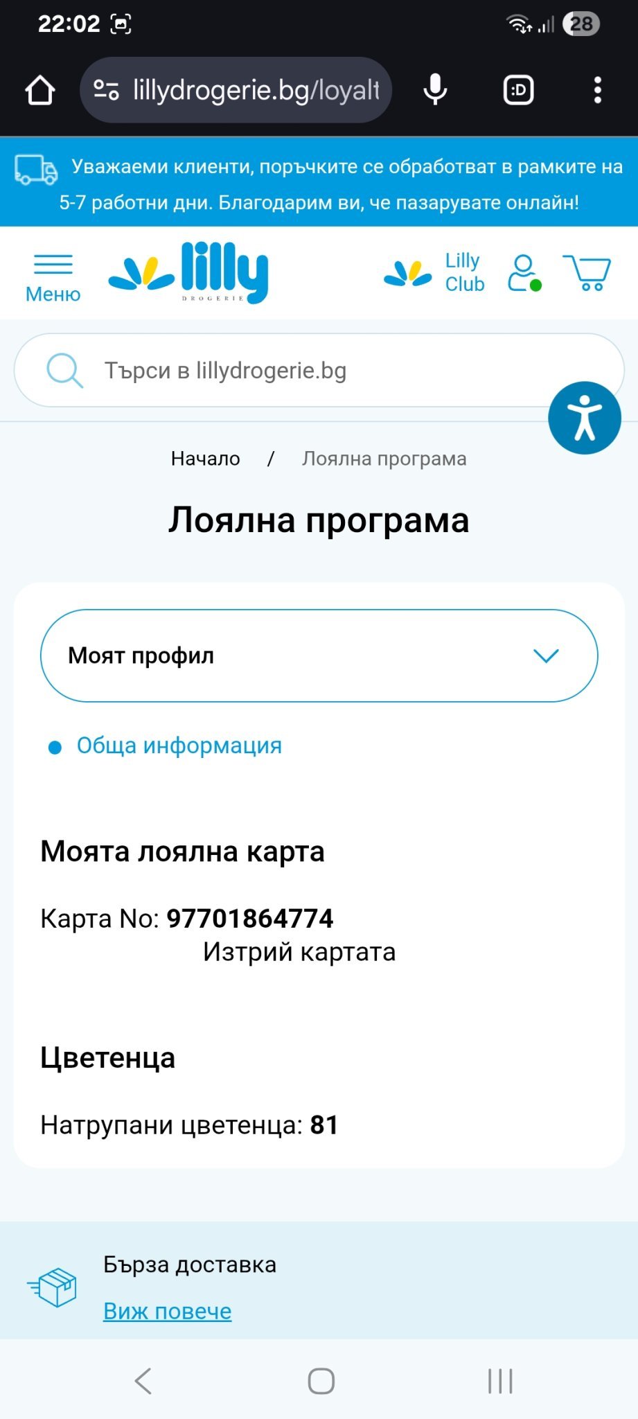 Lilly нямат приложение, нали? Имам някаква членска карта и я цъкам всеки път, не приспада от цената, но трупа някакви точки.