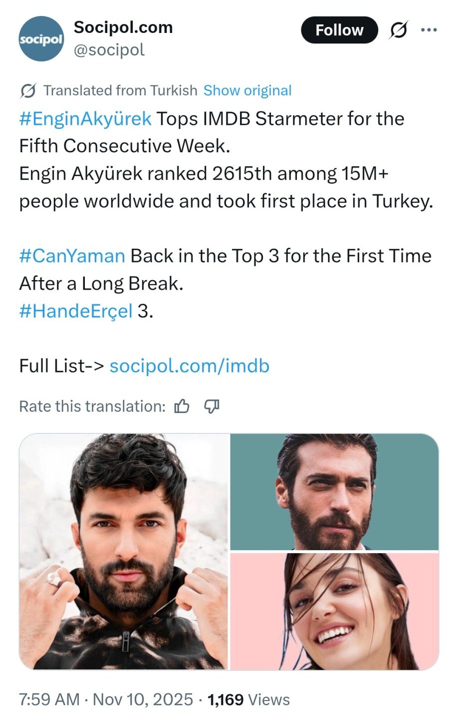 В трети епизод към сериала ще влезе и героят на Енгин Хепилери. Какъв  ще е, предстои да разберем. Енгин е лайкнал снимка в сторито му.