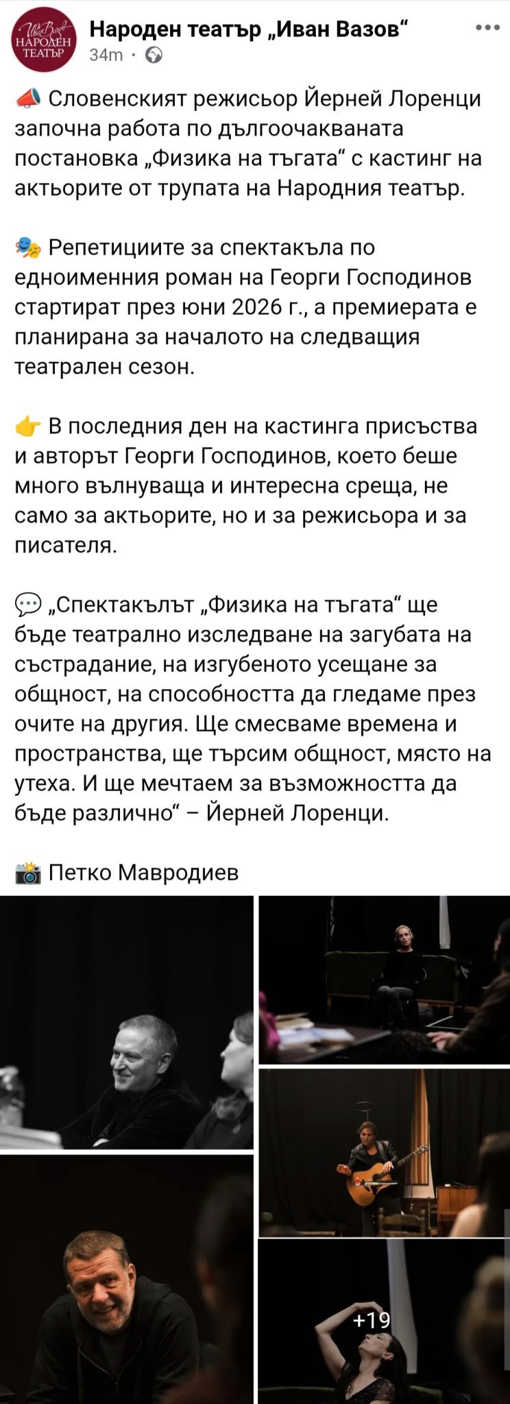 Аз пък много харесвам Орфей и не споделям вашето мнение. Напротив мисля, че ще е много интересно как ще постави Физика на тъгата Лоренци!
