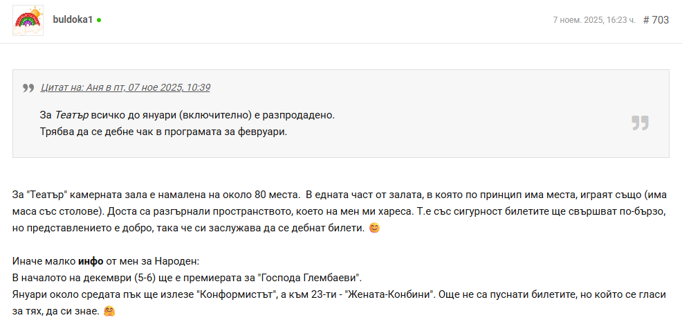 Много благодаря! Взех и за това и вече се спирам, имам 5 постановки през дек и още 2 в първите седмици на януари, ще ме изгонят от вкъщи. Joy