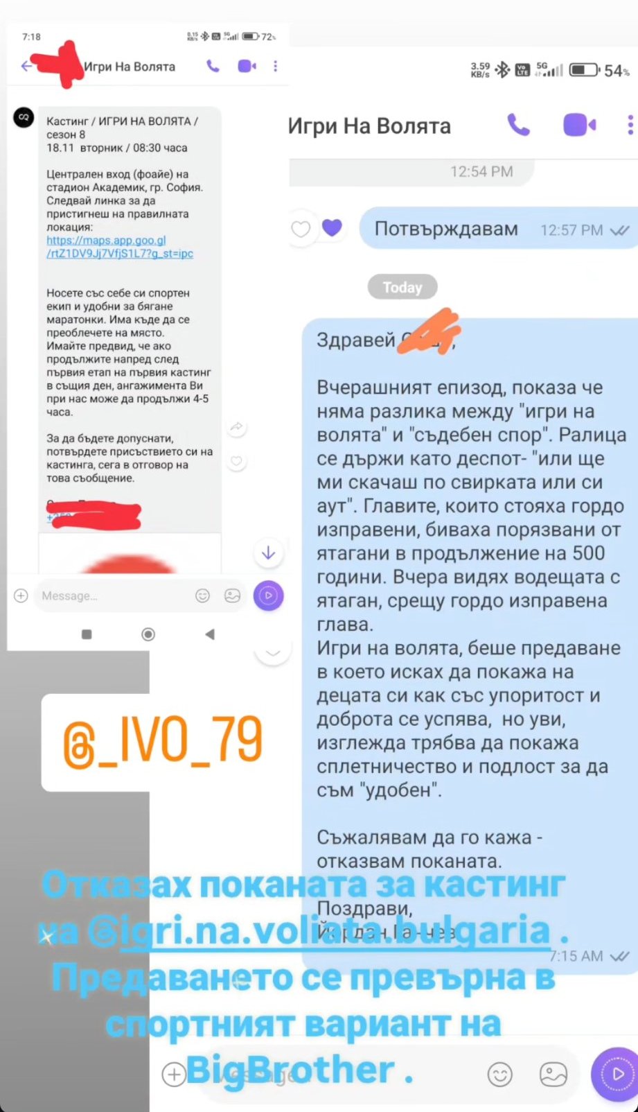 Иво беше репостнал стори на друг мъж, предполагам негов приятел, който е бил поканен да се яви на кастинг за сезон 8 и след снощния епизод, въпросния е отговорил, че отказва да се яви на въпросния кастинг, тъй като се е разочаровал. Дано и други се откажат изобщо да опитват да влязат в този формат, където се разписваш явно доброволно да се гаврят с теб, както решат.