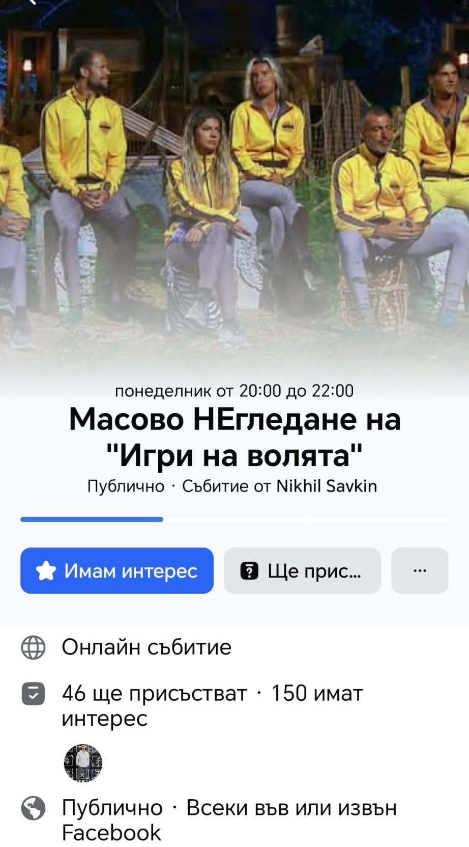 Между другото във фейсбук вече се вихри страница която агитира към масово НЕгледане на Игри на Волята в понеделник