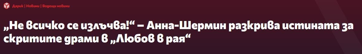 "Малко след епизода Анна-Шермин Метушева избра да се обърне и към публиката. В дълго послание в Instagram тя разкри, че не всичко, което се случва в предаването, се излъчва. „Участието ми беше част от шоу, а не от реалния живот“, написа тя и подчерта, че не би общувала с някои от участниците извън формата. По думите ѝ, ако подобни ситуации се случваха в истинския живот, тя просто нямаше да си „хаби енергията да се кара“. Тя спомена и неизлъчен момент от един от банкетите, когато участниците били попитани кой е най-умният човек в рая, повечето посочили именно нея."