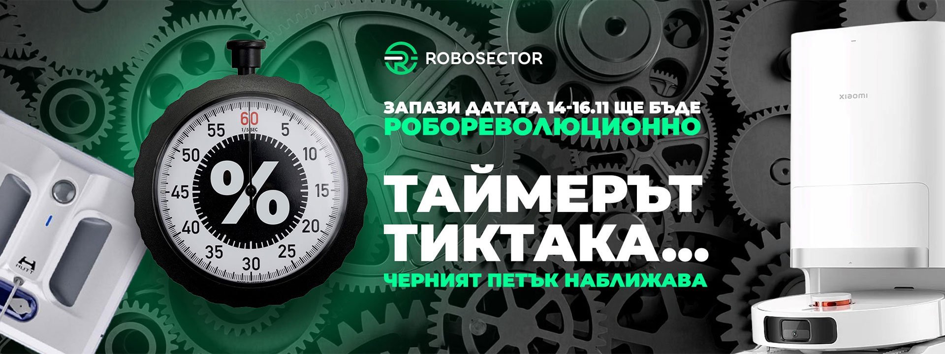 Black Friday в Robosector е почти тук (14 - 16 ноември) и е готов да превърне шопинга в истинско приключение! Време е да се възползвате от ексклузивни промоции на любимите ви роботи, смарт джаджи и аксесоари за дома.