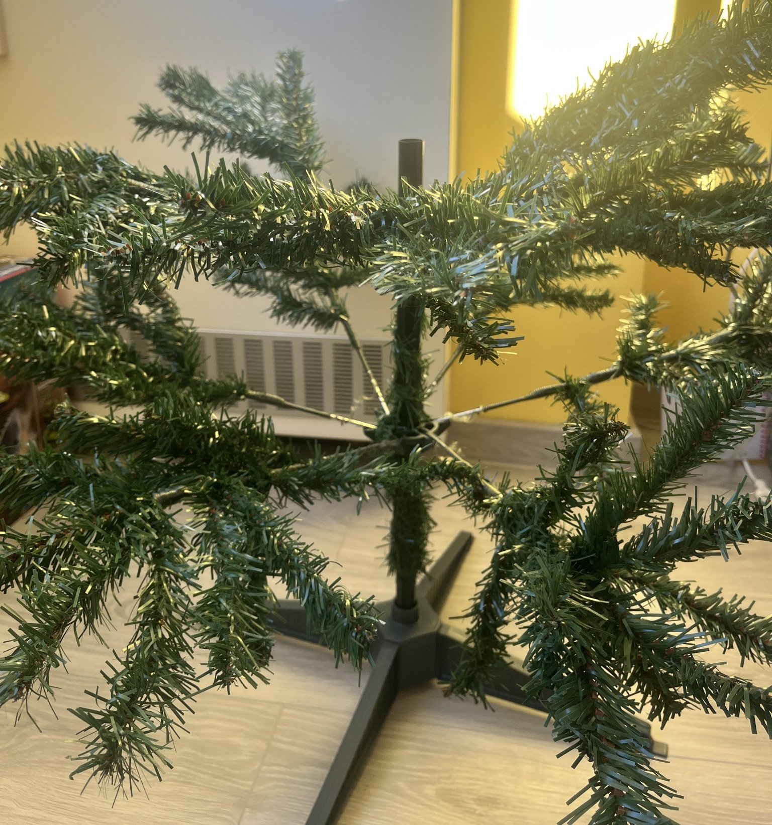 Здравейте, някой купи ли елхата вече? Аз взех преди малко, тръгнах да я сглобявам ама тя на нищо не прилича, много рехава. Или аз нещо не правя както трябва. На снимката е долната част, като сложа другите още по-зле изглежда 🤷🏼♀