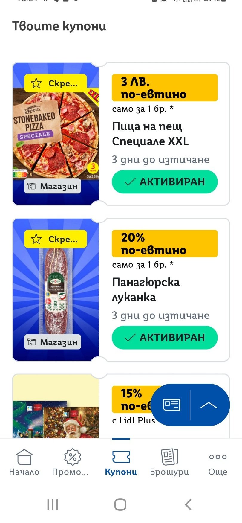 Ako някой търси купон за ХХЛ пица Специале, намалена с 3 лв, имам една, която е до днес. Мислех да купя, но я нямаше при нас. Вафлички имаше 3 броя и ги взех. Simple Smile