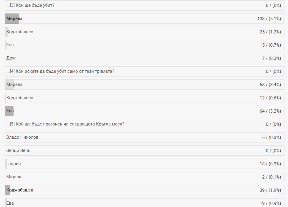 /В анкетата откривам грешка в последния въпрос, защото при петима участници има редовна кръгла маса и задължително прогонване./