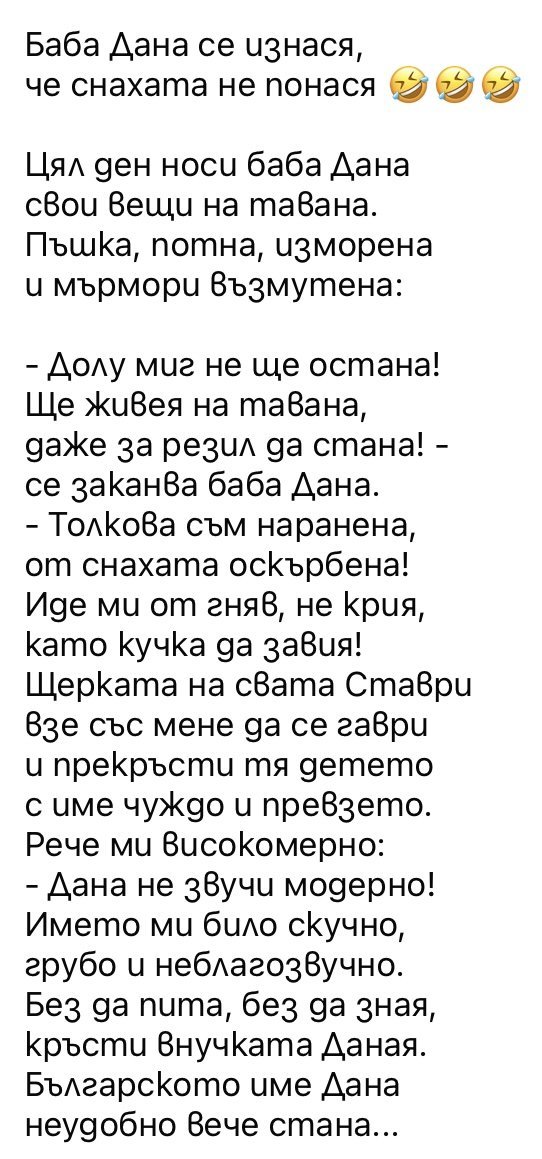Попадало ми е Траянка. Не  Траяна като бисквитите, ами с "к" и като умалително. Беше много неподходящо име... Една красива жена е.