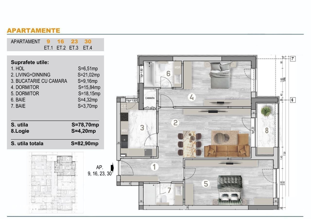 И още нещо важно - квадратите ги броят реални. Ето например този тристаен му свалих схемата: