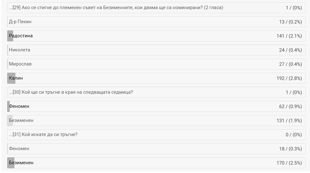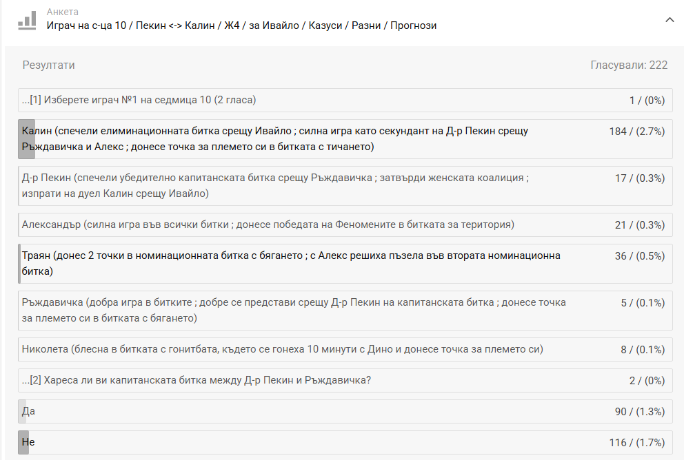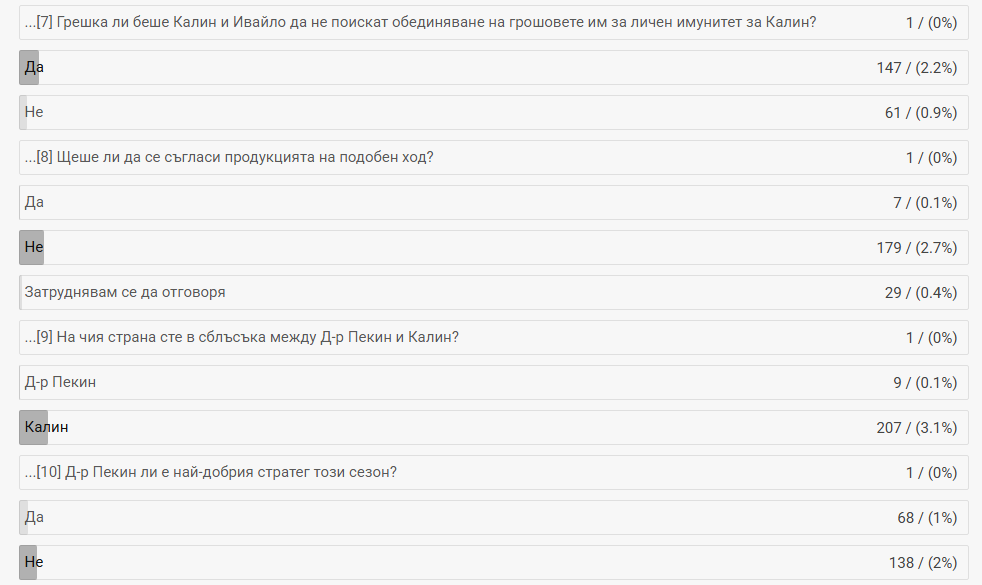 1. Да, за цялата седмица 133 гласа