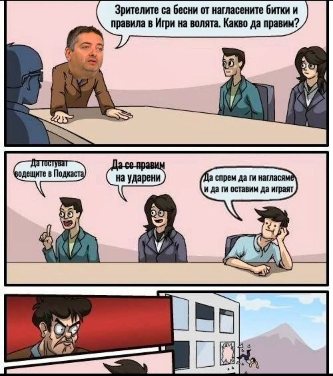 (диви викове пред телевизорите и хвърляния на тежки предмети)