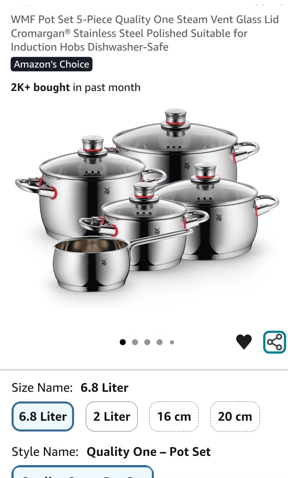 На WMF много често пресеят чудесни намаления в немският Амазон, така че може да намерите комплекта и на по добра цена, ако не Ви е спешен