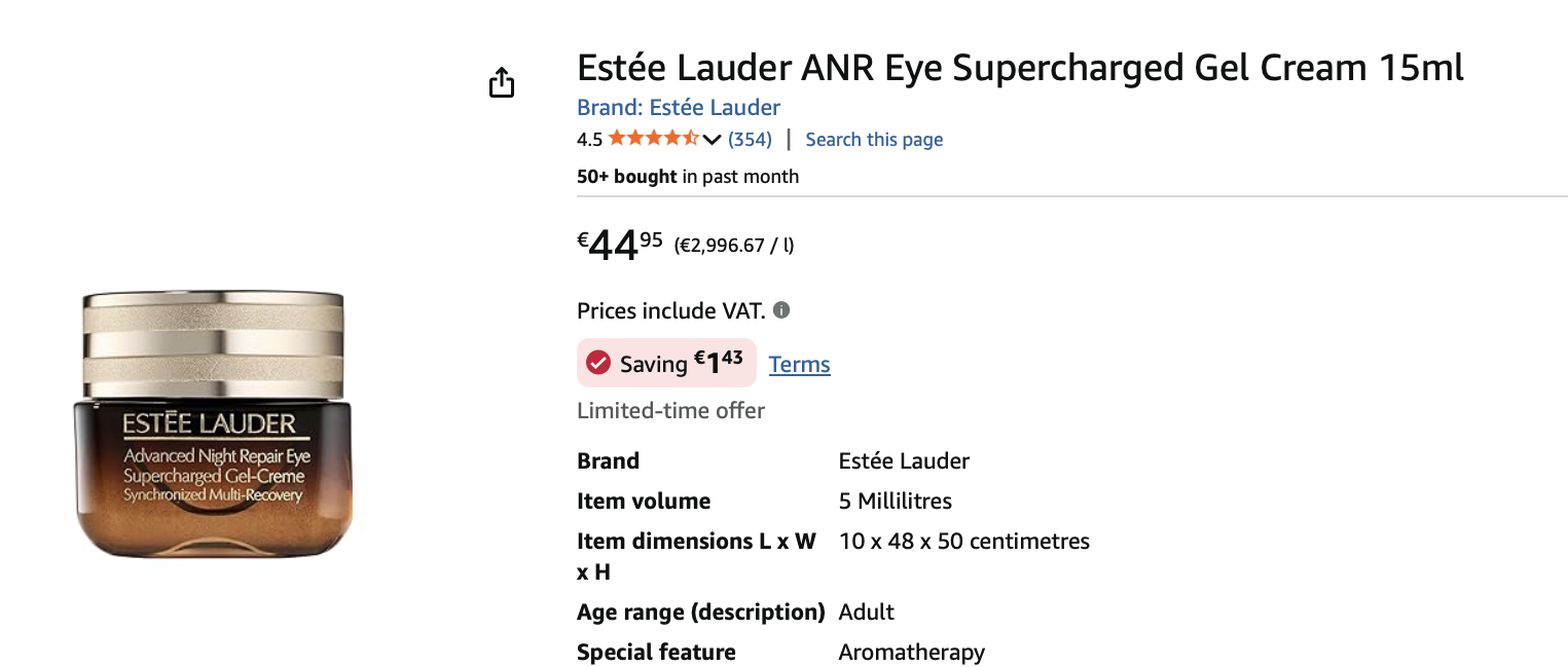 15 е и в описанието на продукта по-надолу в амазон. Понякога излизат такива грешки. ето : https://www.amazon.de/-/en/Estée-Lauder-Supercharged-Cream- … cx_mr_ca_hp_atf_d