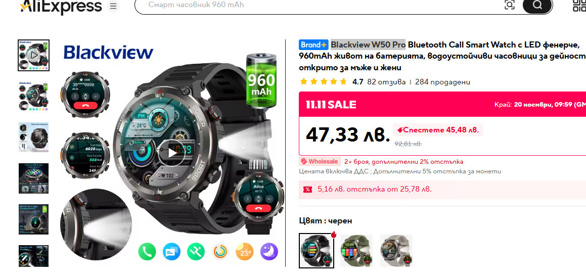 Въпросът ми е, че го гледам в Тецхнополис сега е 119 лв., на черния петък мисля че падна на 70 лв. В ОЗОН си е на 100 лв. В Алиексперс го има на 47 лв.  (има го от различни търговци от 50 до 80 лв,). Дали е "оригинален" в Алито спрямо Тецхнополис? Доколкото е оригинален евтин китайски часовник и на двете места. Има хубави коментари в Алито. Разликата с Технополис е че в Алито няма гаранция естествено. Като цяло началните снимки и в технополис и Али са едно към едно (ракурс, светлини и т.н., в Али е сменен скина и е "пусната" светлината с фотошоп примерно)