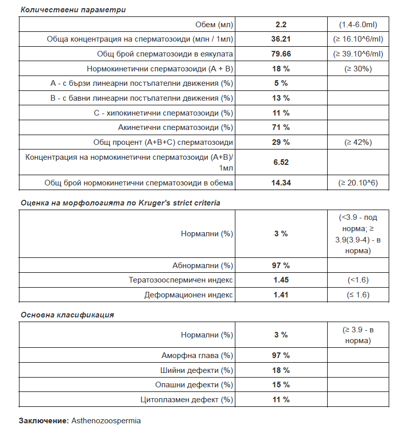 Ще я прикача моята също (честно да си кажа не искам някакси да повярвам че е 0% морфологията от само 100 изследвани сперматозоида :/ )  Аз имам въпрос, някой кандидатствал ли е със спермограма от ню лайф Бургас ? Видях че ню лайф- Пловдив са с списъка за фонда но дали тази от Бургас ще важи? Те са едно и също , просто клона е различен.