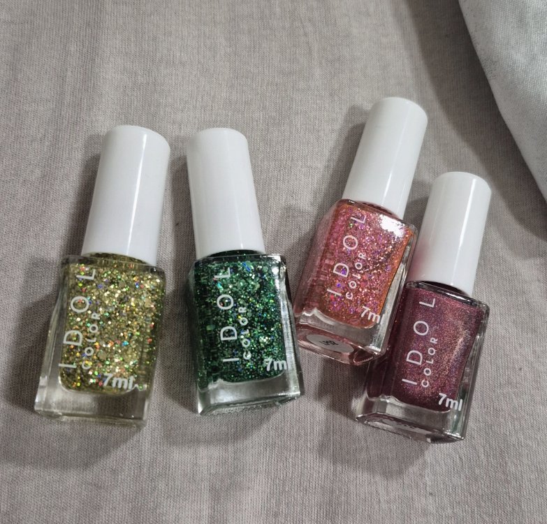Със специалното участие на гъба за грим, завита във фолио за съхранение. Трябваше да бъда бърза, защото и децата искаха да се мажат, затова всеки пръст е с различен. Но с гъбата, стана бързо и лесно. Лаковете са :
