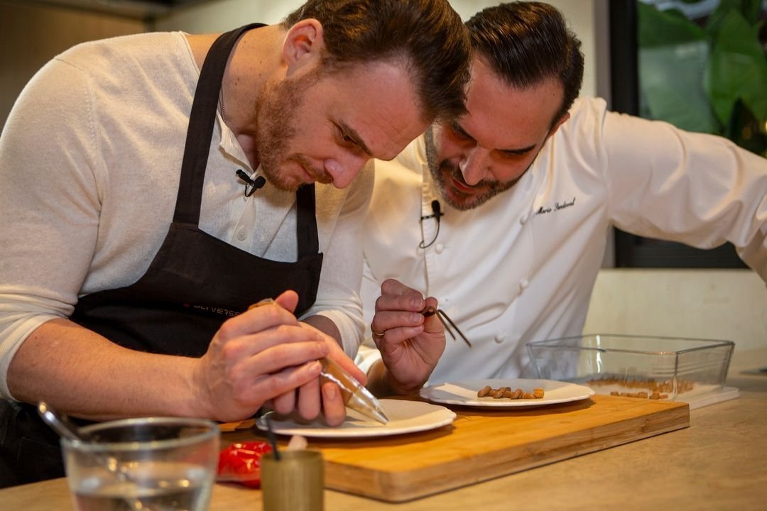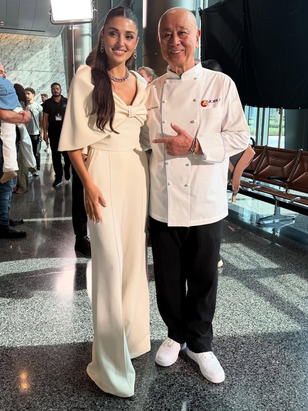 "Ханде Ерчел и готвач Нобу по време на снимките на рекламата за кампанията „Visit Qatar“