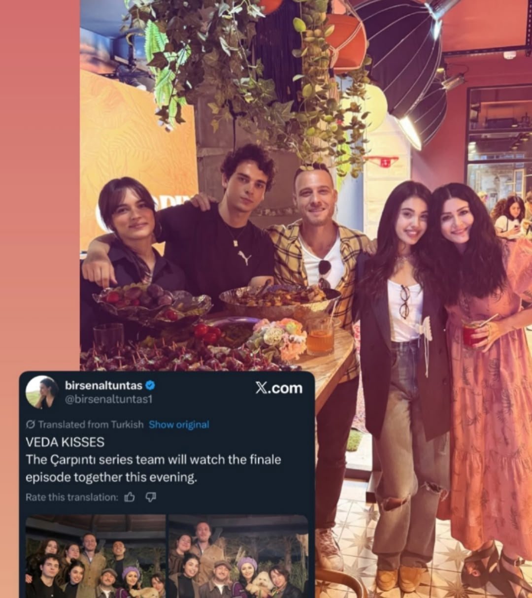 Според Бирсен, актьорският състав и екипът на сериала "Çarpıntı / Сърцебиене" ще се съберат тази вечер, за да гледат последния епизод.