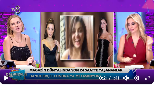 "Ханде Ерчел, която обяви, че е в процес на запознанство/опознаване с продуцента Онур Гювенатам, попадна в заглавията на медиите с последната си публикация в Instagram. Според слуховете, Ерчел, която пусна песента „Durdur Beni“ от генерирания с изкуствен интелект проект на Сагопа Каймер, Nun Sultan, е направила препратка към бившия си приятел Хакан Сабанджъ с тази публикация. Следният текст от песента привлече вниманието: