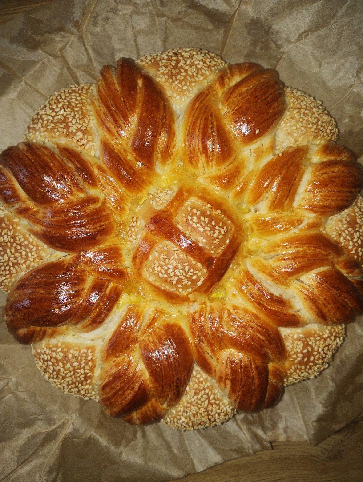 - Новогодишната баница със сирене и с паричка в нея и късмети от различни връхни дрянови клонки с пъпки по тях.