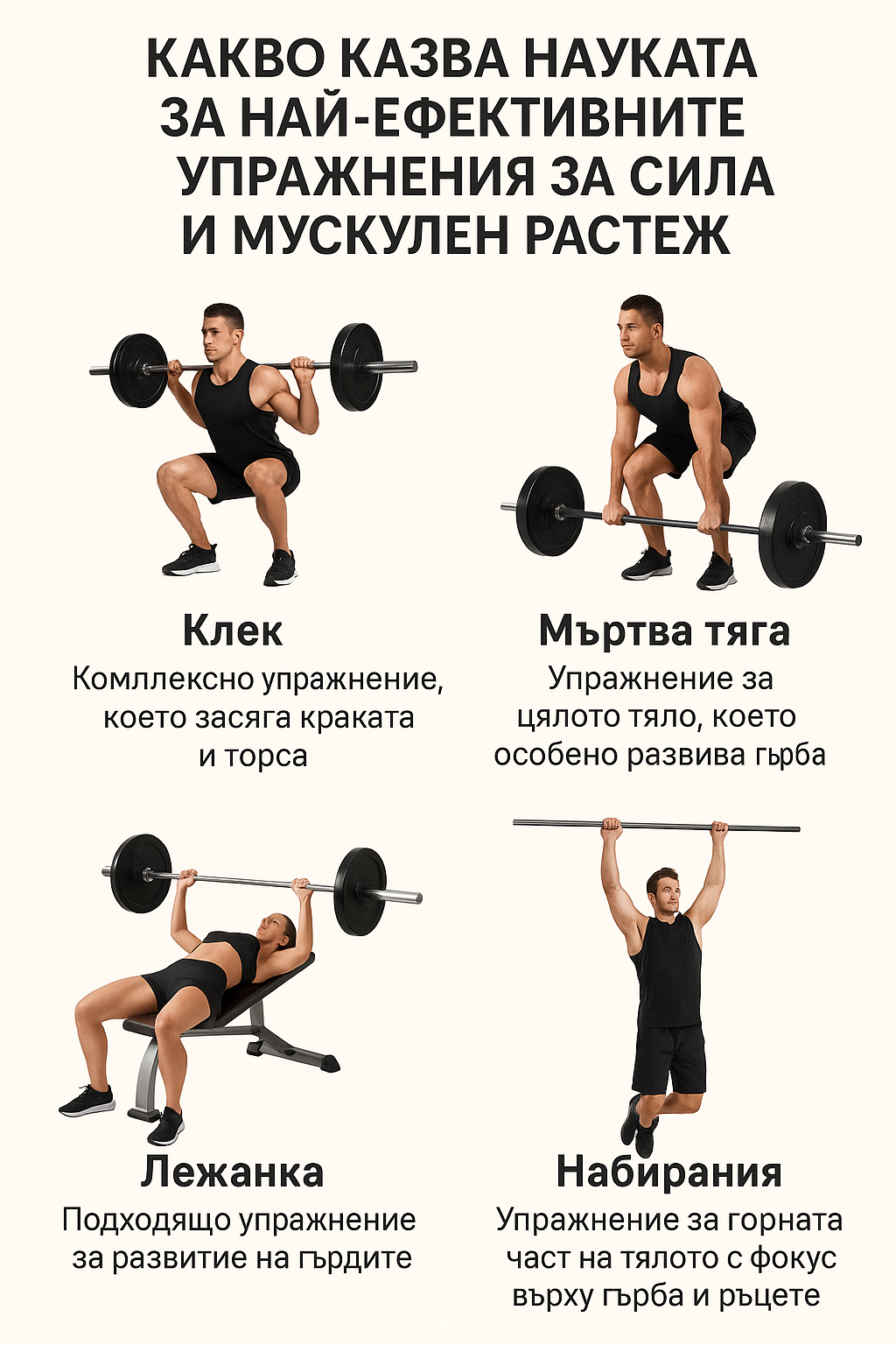 Научните изследвания показват, че най-ефективните упражнения за сила и хипертрофия: