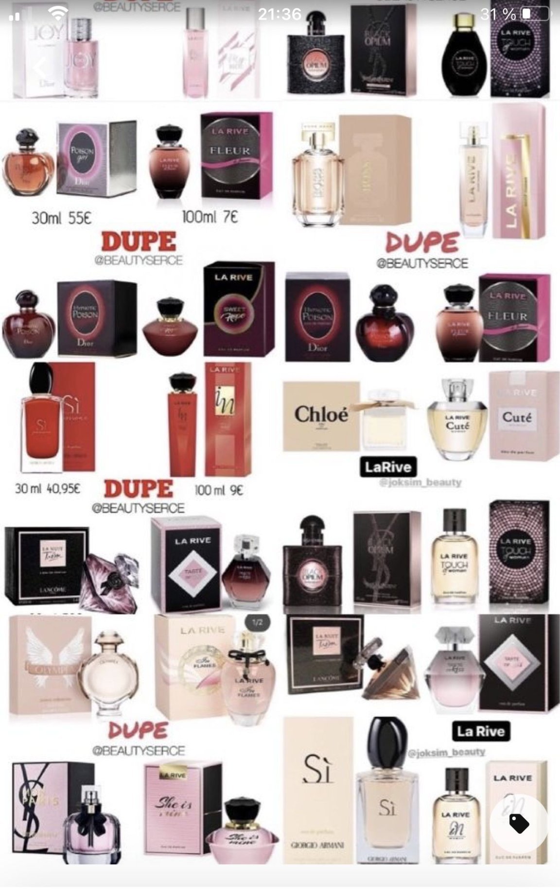 Аз на Ла рив харесвам това копие на Прада Парадокс. Имам един отворен от няколко месеца и като че е станал по траен, а може и да си въобразявам.. Харесвам и един, който е копие на Гучи Флора, има го от 20 години сигурно. Нямам снимка обаче.
