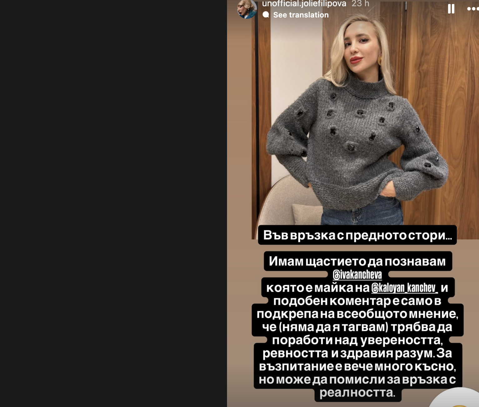 Не са, Габа през цялото време е била фейк. Те дори не са се целували, сега една насилена целувка между приятели. Не са имали нищо общо. Тази жена бе публикувала сторита по въпроса, но всичко без това вече му е изтекъл 24-часовия срок, в което е видимо