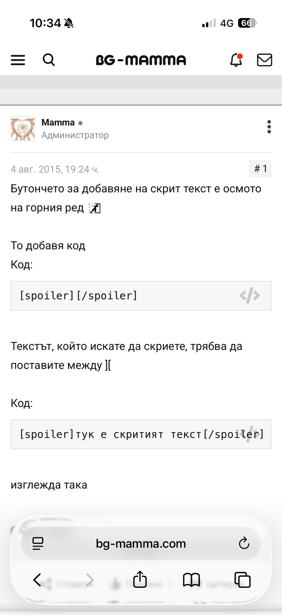 [спойлер] [/спойлер] изписано на англ.