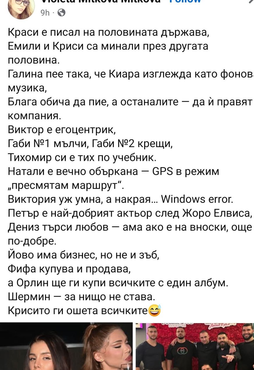 Да, и аз това писах, той, доктор Пенко, близнаците, диджеят от Карлово, явно не са останали с добри чувства или наистина искат да се дистанцират. Тези, които влязат по-късно са налични, но те не. Надявам се да вземат поука и за следващия сезон да измислят друг начин да включат участниците.