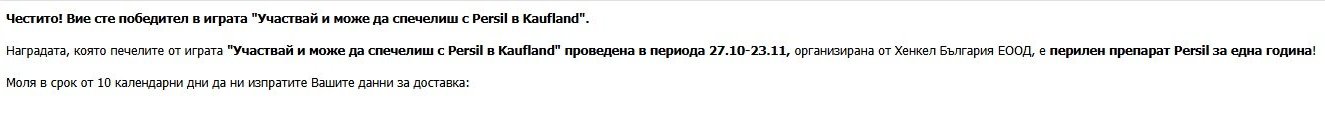 Допълвам се: днес ми е ден. Сега получих имейл, че печеля Персил за 1 година Simple Smile
