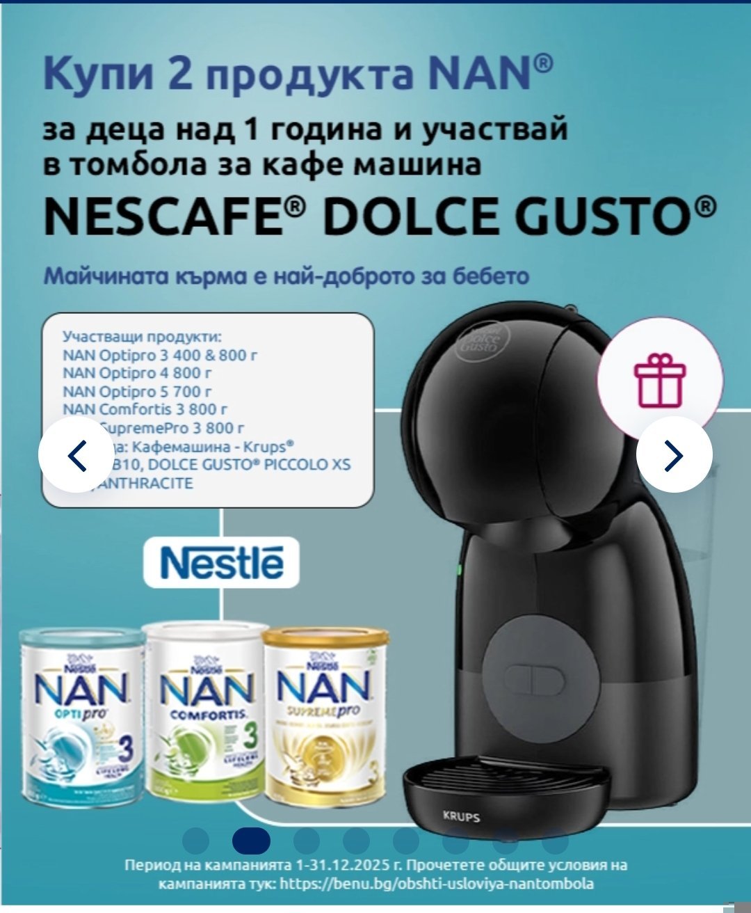 Игра в Benu.bg за кафе машина Dolce gusto  при покупка на 2 бр NAN