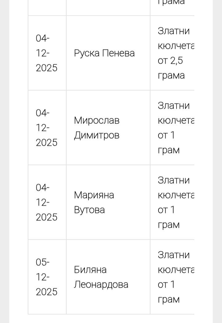 За златните кюлчета дали продължават да теглят виждам списък с дата 4,5 декември